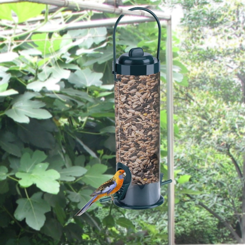 1pc Outdoor Garden Plastic Transparent Hanging Wild Bird Feeder Seed Container Storage for birds to perch
